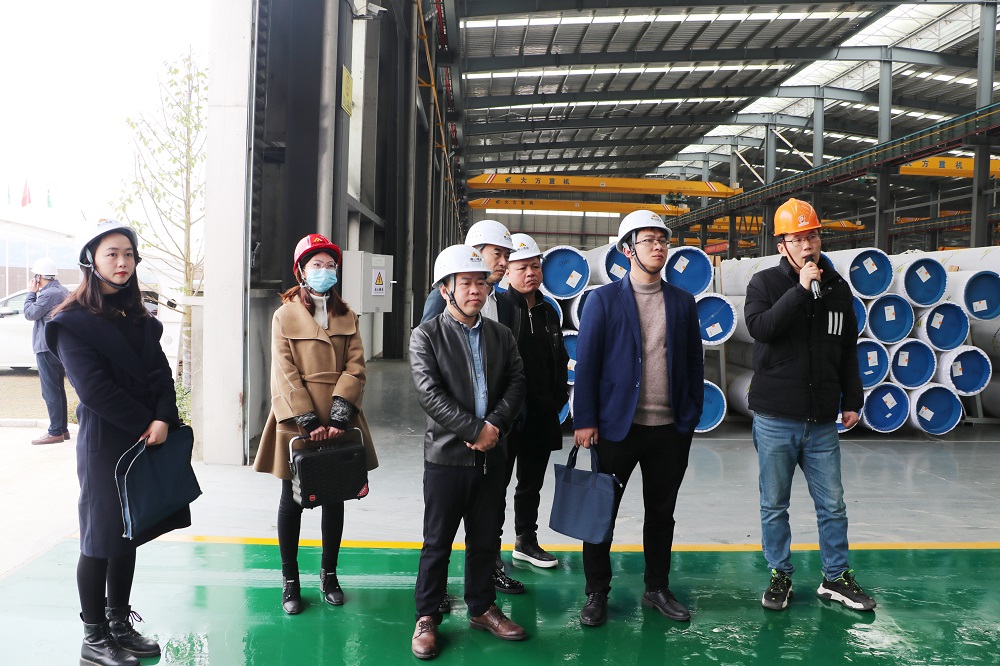 3月1日,宁德市工信局副局长陈长串一行在周宁县工信局负责人李佐锶的陪同下赴周宁县不锈钢深加工产业园调研第一季度工业“开门红”情况,盟信公司总经理李启光、壹号娱乐-com钢管焊管事业部副总经理于从龙进行了热情接待。